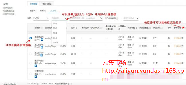 这里就可以选择阿里云所有的型号了,不再局限某种型号。