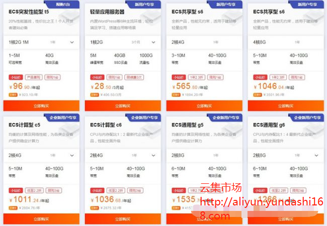 这种方式就是传统的阿里云官网购买方式。特别提醒:本方式只能选择突发性能T5型号,有不了解该型号特点的,可以参考帮助使用文档来了解它的特点。