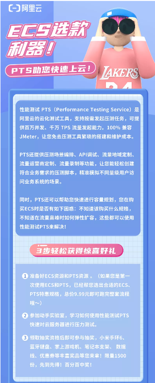 性能测试 PTS(Performance Testing Service)是阿里云的云化测试工具,支持按需发起压测任务,可提供百万并发、千万 TPS 流量发起能力。100% 兼容 JMeter,让您免去压测工具繁琐的搭建和维护成本。
