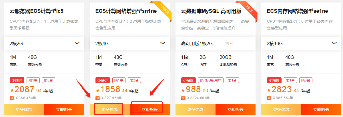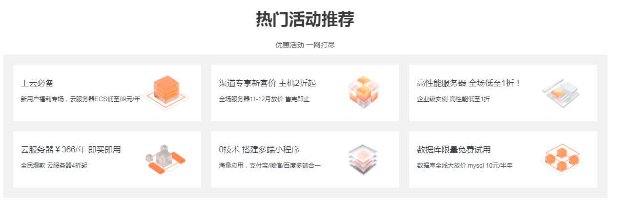 除了采购季活动,阿里云更多众多优惠活动,点击下图进入页面,拉到最下方即可进行浏览。