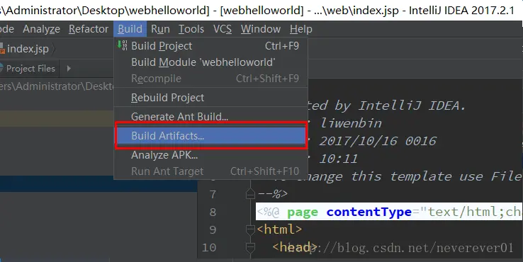 这样就设置好了,下面我们来生成一个war包 执行Build->Build Artifacts->build命令