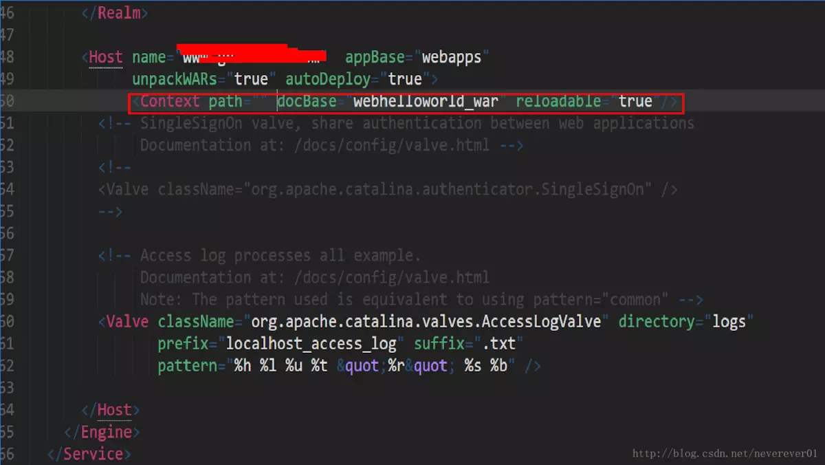 修改/usr/java/tomcat/apache-tomcat-8.5.20/conf/下的server.xml: