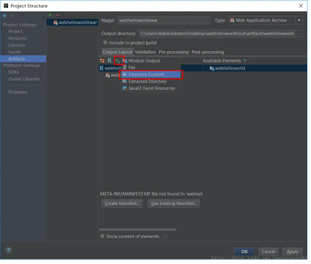 然后添加一个content,存放路径选择它默认的就行,一般都是在war包的相同目录
