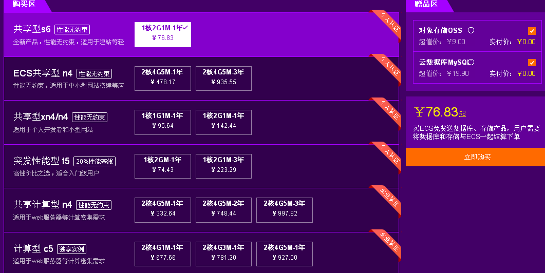 在确定好自己初次购买的云服务器配置之后,下面就是如何选择阿里云优惠活动了,个人比较推荐的是阿里云目前正在火热进行中的上云采购季的新用户福利专场和阿里云小站,