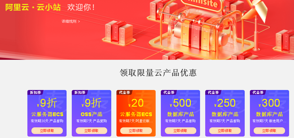(1).云服务器ECS、OSS产品9折券,云服务器ECS、数据库产品代金券。