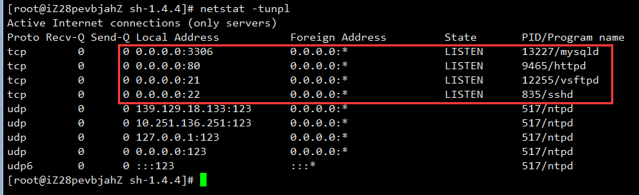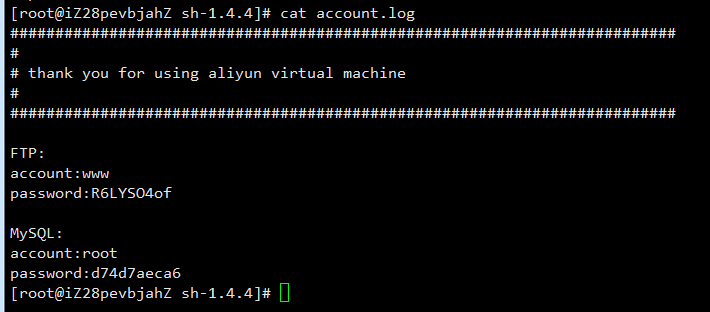 在命令行输入如下命令:(可以看到我的ftp和mysql用户名和密码)