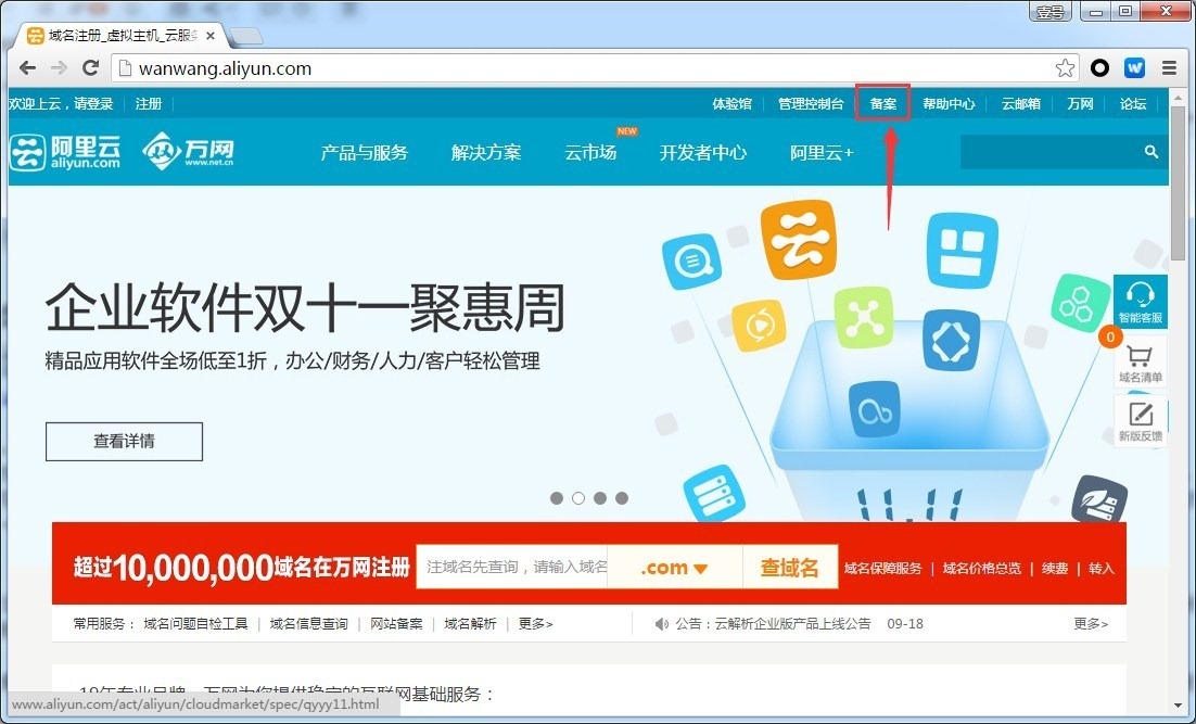 上图中,进入阿里云的官网,点击上方的“备案”通道,进入到阿里云的代备案系统。