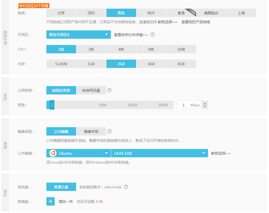 根据自己的需要选择合适的配置,如果仅仅是做wordpress个人博客的话,那么以下配置可以参考: