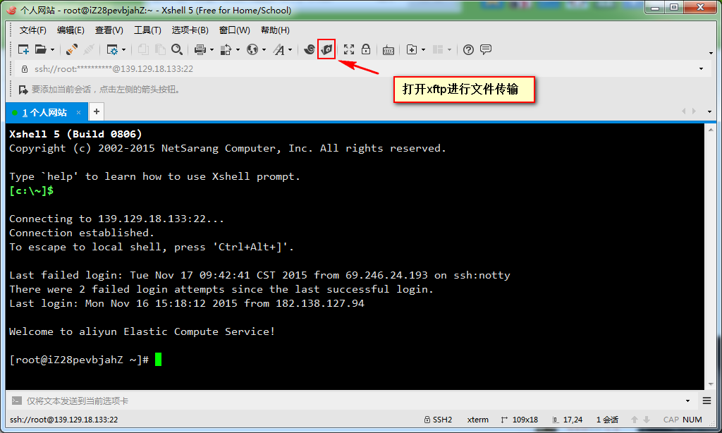 (2)下载完成后我们解压缩,打开xshell->点击上方的文件夹样式的小按钮打开xftp->进入alidata/www/phpwind目录下,将这个目录的所有文件全部删除。