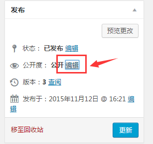 方法一、编辑文章时,左侧发布面板 → 公开度 → 勾选“将文章置于首页顶端”。如下图所示: