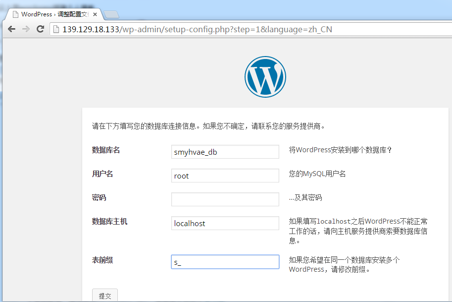 - 表前缀:这里是在数据库中建立的表的前缀名,默认是wp_,意思就是在数据库空建立的表都是wp_开头的,处于安全考量不建议使用默认的wp_,你可以根据自己的喜好设置其他的前缀