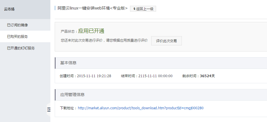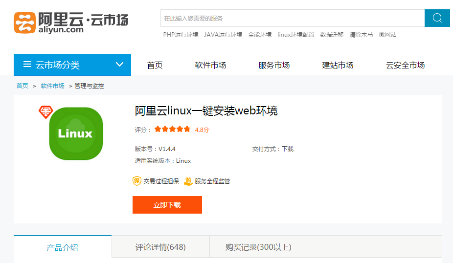 我们登录阿里云之后点击云市场,找到“Linux一键安装web环境”的安装包: