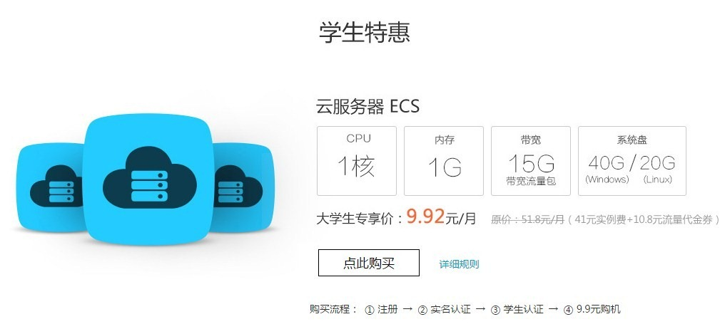 登录阿里云官方网站,在“产品与服务”中选择云服务器ECS,选择立即购买。运气好的话还能赶上阿里的一些优惠活动。有学生机跟新用户专享的114一年的体验机