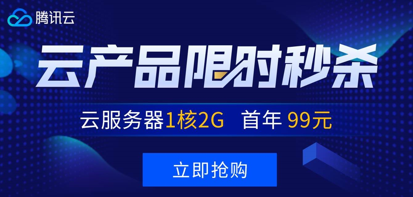 【腾讯云】云产品限时秒杀,爆款1核2G云服务器,首年99元