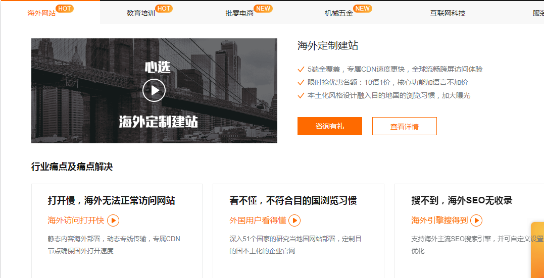 针对海外网站呢,阿里云建站也退出全方面方案看下图