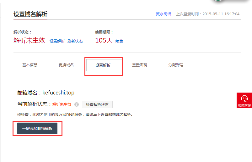 如您使用万网域名,万网云邮箱支持自动设置解析记录。